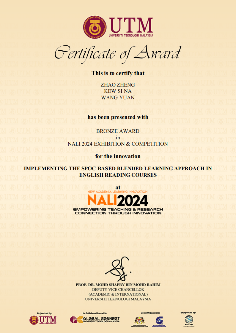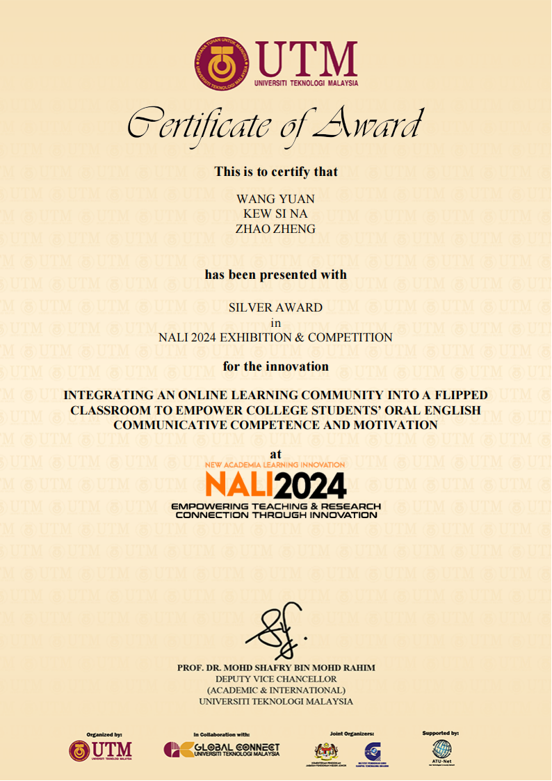 近日,sunbet申博的王媛和赵铮两位老师组队参加了马来西亚新学术与学习创新国际比赛(NALI2024),并斩获一银一铜的优异成绩。