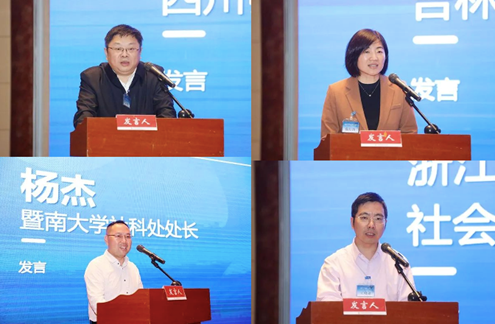 四川师范大学党委书记郭勇、吉林大学社会科学研究院院长曲红梅、暨南大学社科处处长杨杰、浙江工商大学社会科学部部长、社会科学研究院院长王晓蓬分别发言。中国社会科学网记者吕家佐/摄