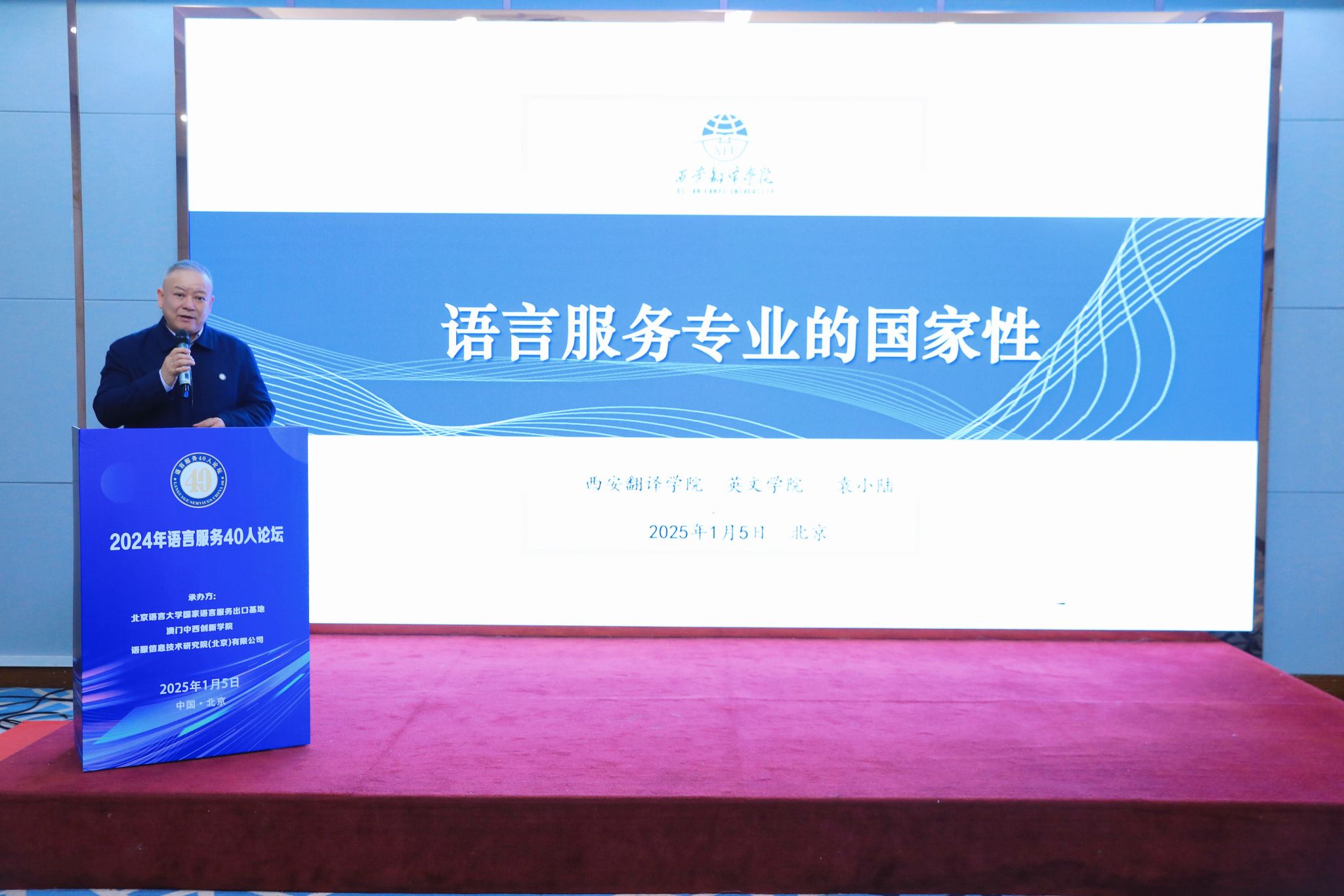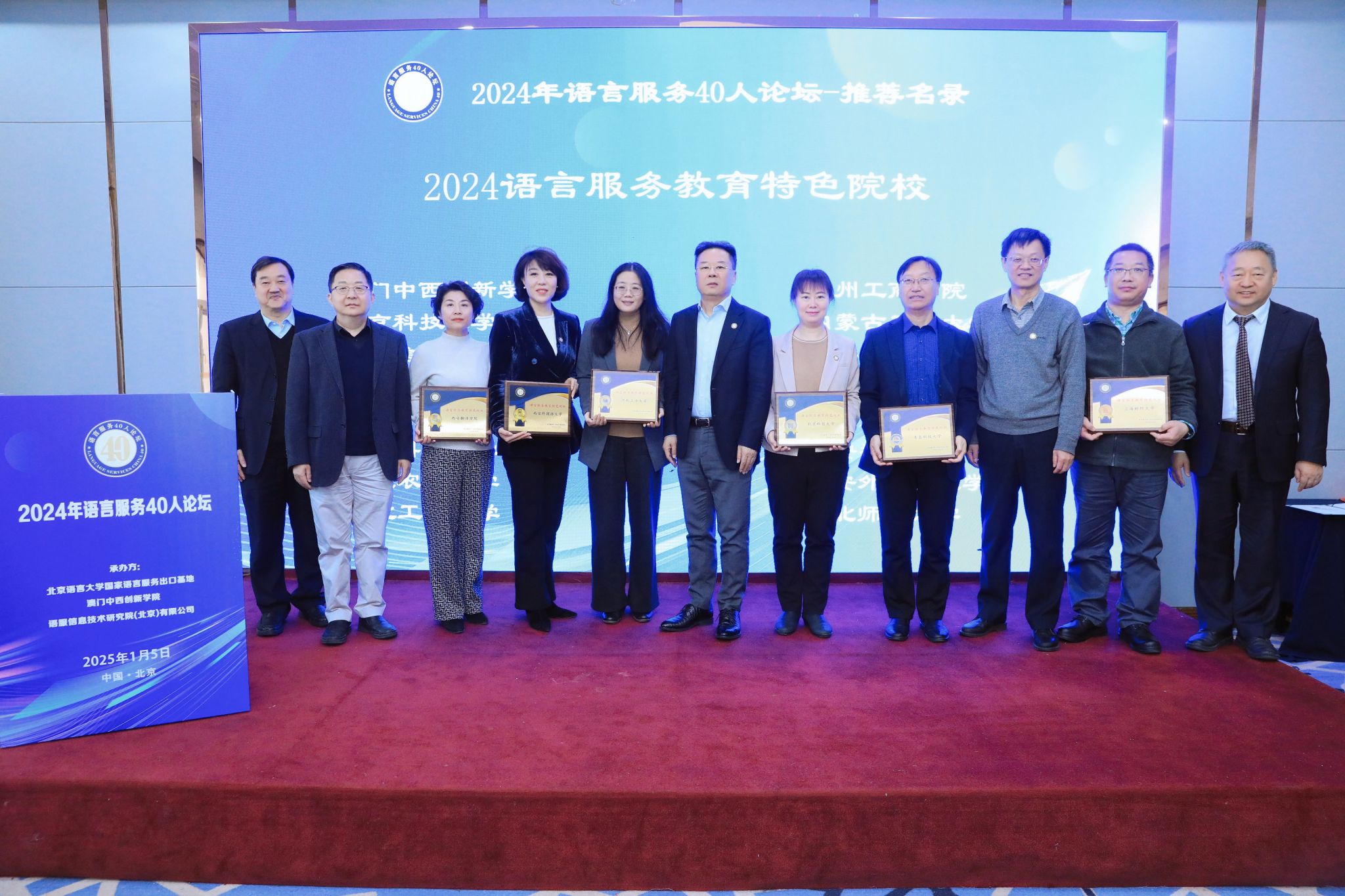 2025 年 1 月 5 日, 2024 年语言服务 40 人论坛于北京大红门国际会议中心举行。此次论坛聚焦“智能语言服务与新质生产力发展”主题,汇聚了语言服务行业主管部门领导、投资机构、产业界及学术专家等各界人士,共同探讨语言服务产业与教育的高质量发展路径。