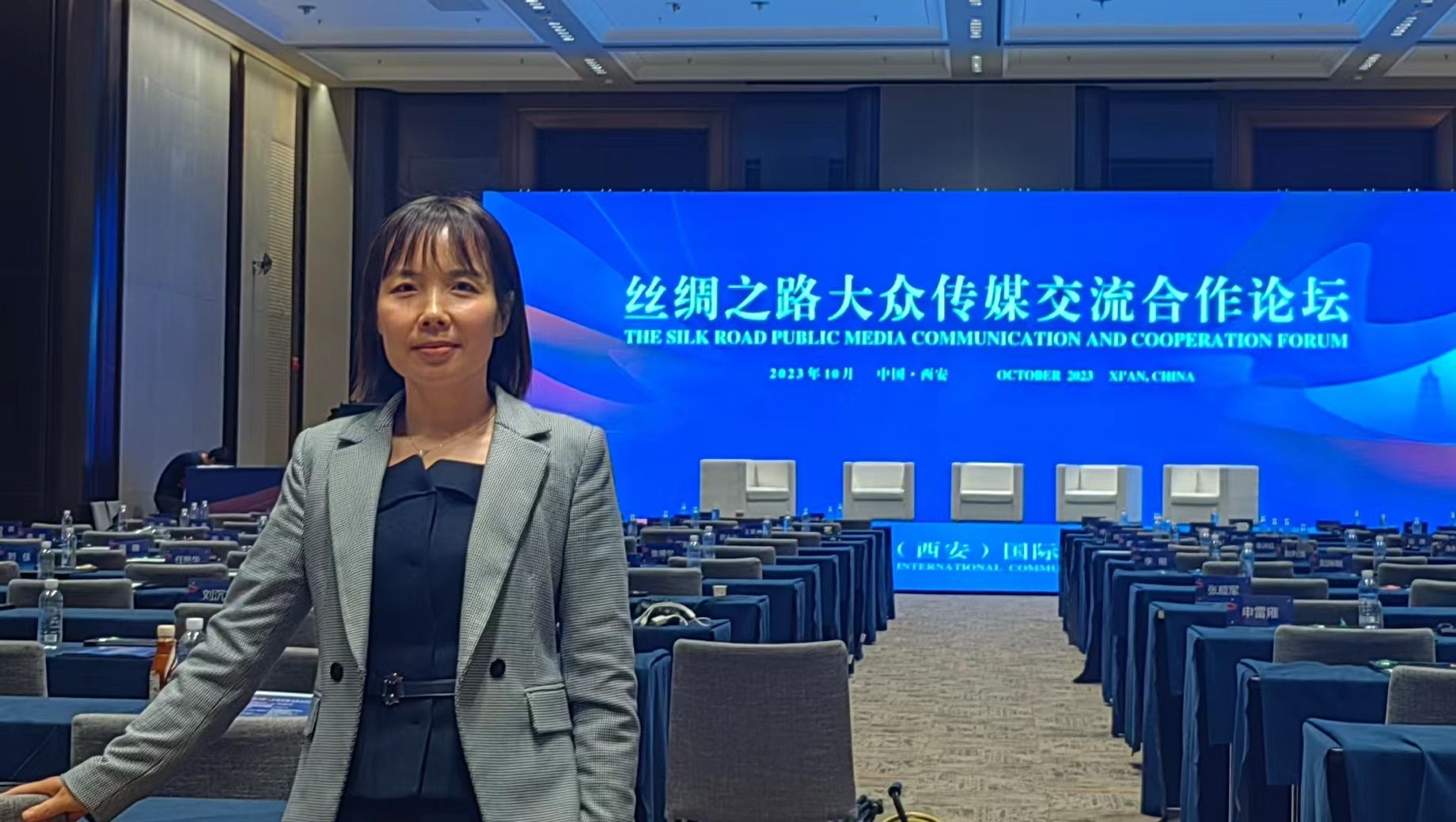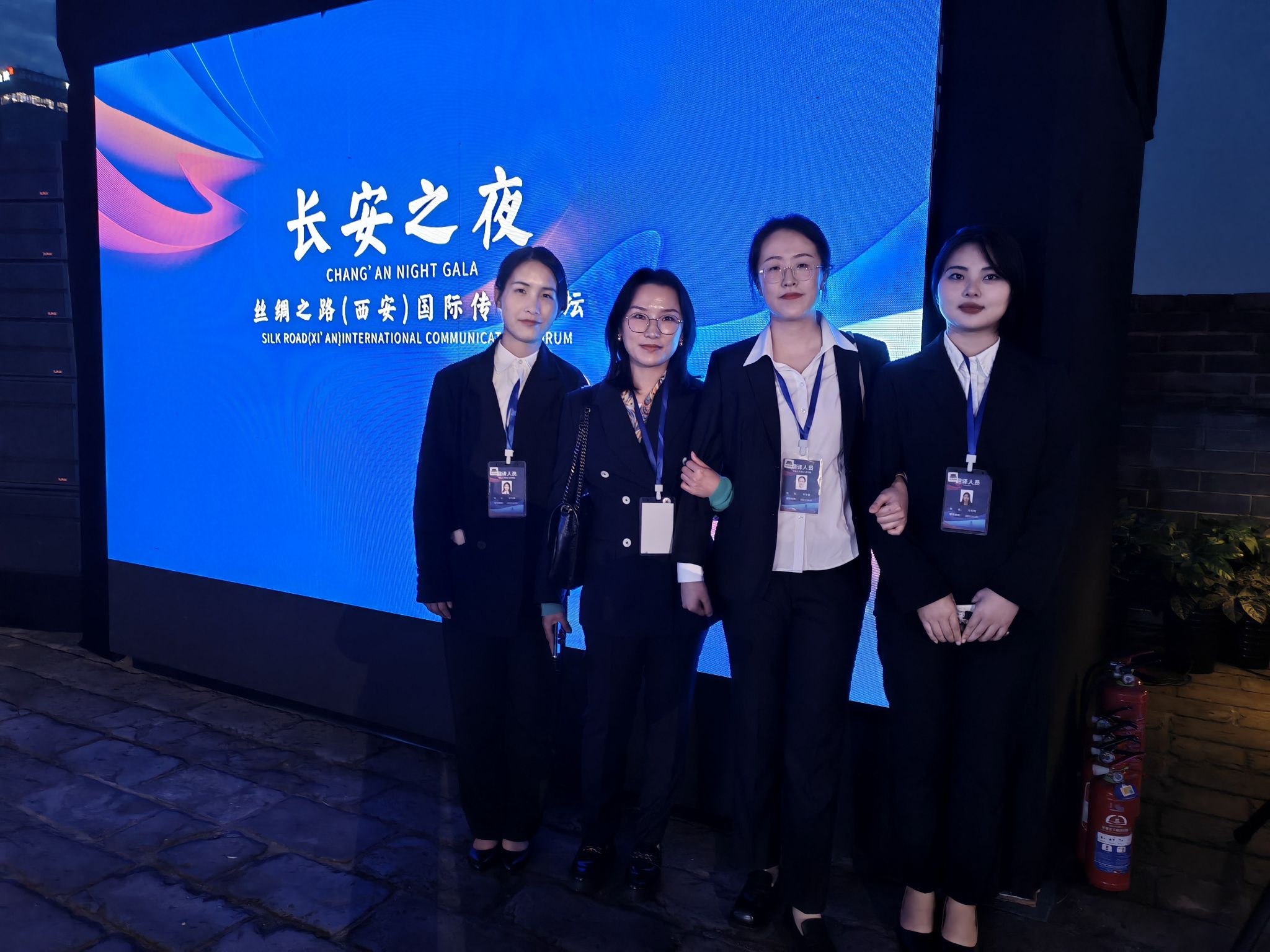 该论坛以“高质量国际传播促进文化传承发展”为主题,分为“美美与共 丝路同行”对话会及“丝绸之路”大众传媒交流合作论坛两大平行论坛。我院高级翻译学院教师崔蓓应邀承担了分论坛的同声传译工作。论坛结束当晚,“长安之夜”文化交流活动在永宁门举行,高级翻译学院教师马慧、李梦茜,带领我院学生梁瑜颖、沈玥玥担任此次活动的陪同口译,积极为外国嘉宾讲解大唐文化,介绍西安人文特色,工作备受好评,展示了我校翻译专业师生扎实的口译功底和专业的实战能力。