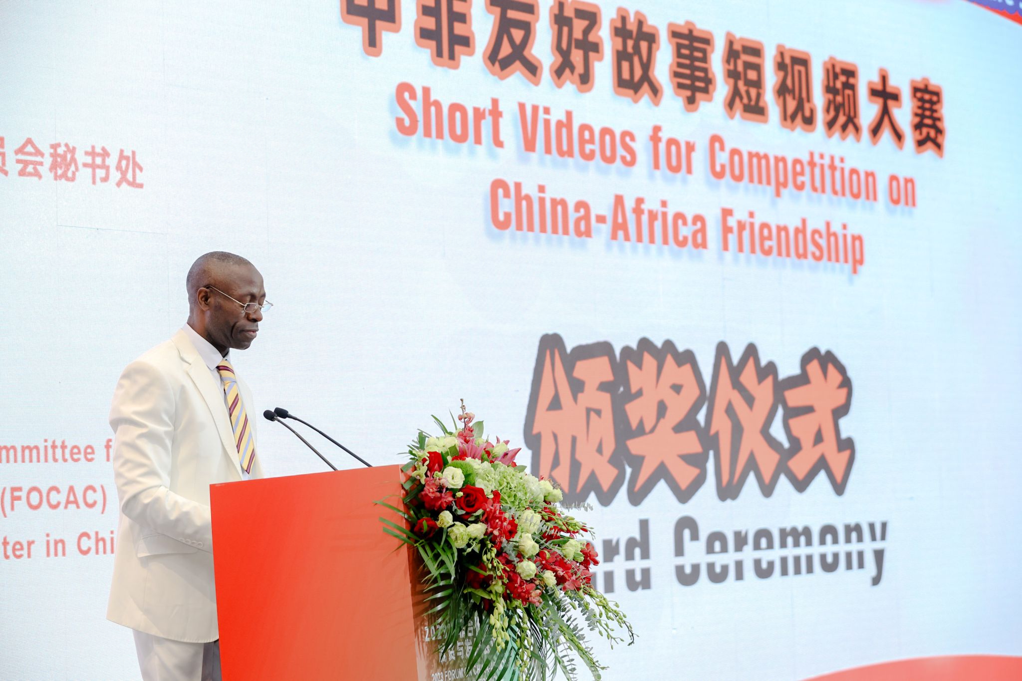 此次获奖的短视频作品《执笔画桥》,主人公为我校非洲研究中心研究员恩噶啦·恩弗尔·哈山,作为一名来自喀麦隆的外教和中国女婿,已在中国工作生活十余年。视频中,他以其独特的视角讲述了中非经济和中非教育合作的成功故事及其产生的深远影响,展现了不断深化的中非文化交流和合作关系以及中非人民之间的深厚情谊。恩噶啦在颁奖典礼上代表获奖选手做了发言。他在发言中介绍了中非在经济发展、减贫和教育合作等方面取得的成就及中非合作项目为非洲各国带来的实实在在的好处。