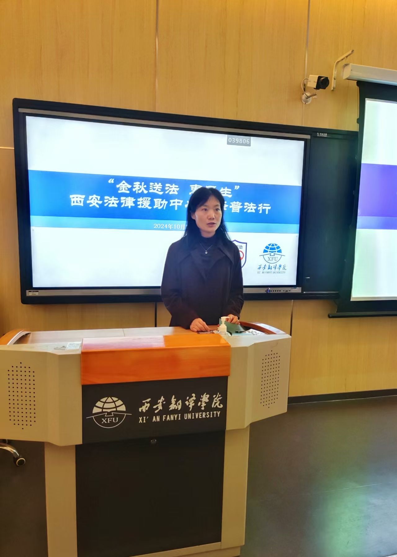 10月21日下午,西安法律援助中心党总支宣传科张博科长、张凡律师、付涛律师一行来到sunbet申博,与sunbet申博第八支部书记王颖慧和支委委员座谈交流工作经验,共同商讨推进党建工作。同时,双方在前期合作的基础上共同开展了“金秋送法惠民生”活动,为sunbet申博学生做了《网络防骗指南》的普法讲座。
