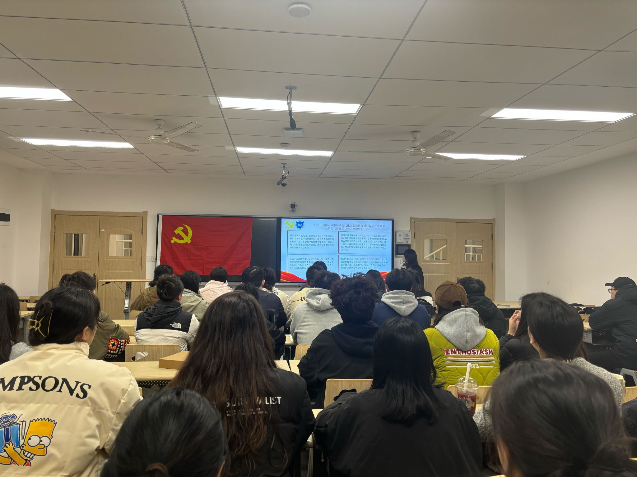 活动伊始,颜毅同学阐释社会主义现代化的五个特征,强调习总书记讲话的重要精神。颜毅指出作为新时代的奋斗者,我们当深入学习总书记重要讲话精神,将个人的成长与国家现代化建设紧密相连。在各自岗位上,以拼搏之姿、创新之态、担当之勇,为推动现代化进程贡献智慧与力量。用实际行动诠释对党忠诚,对人民负责,对时代担当。让我们携手共进,沿着总书记指引的方向,在现代化的伟大征程中砥砺前行,书写无愧于时代的辉煌篇章。